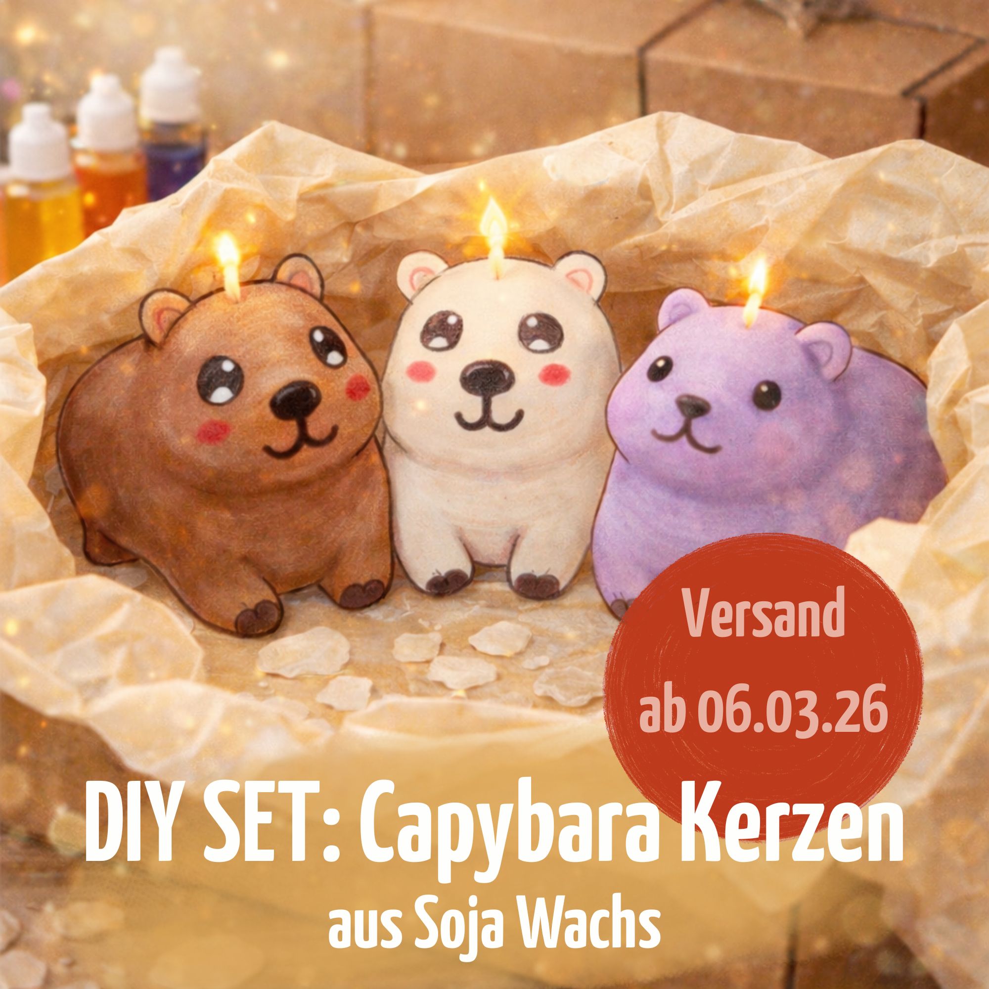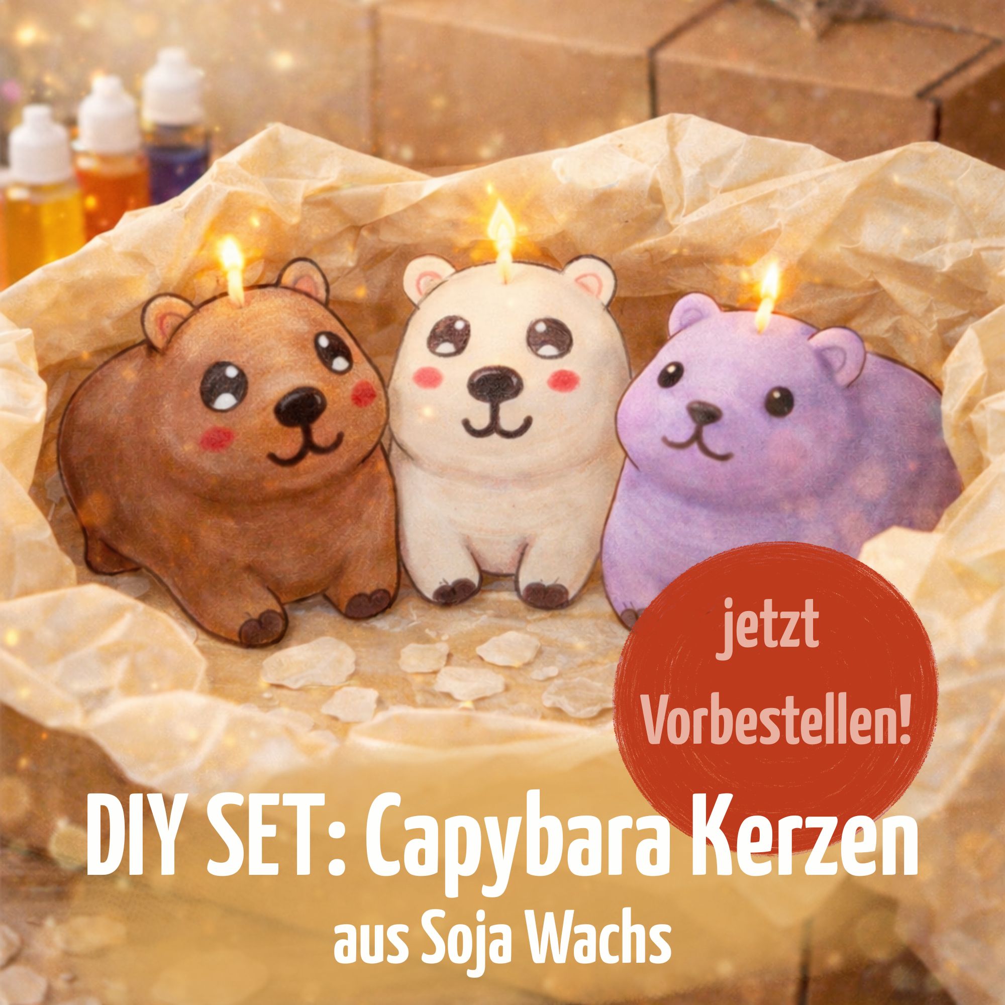 DIY Capybara Kerzen Bastelset – Limitiertes Sojawachs Set mit 3 Silikonformen & Farben | Kerzen selber machen Trend