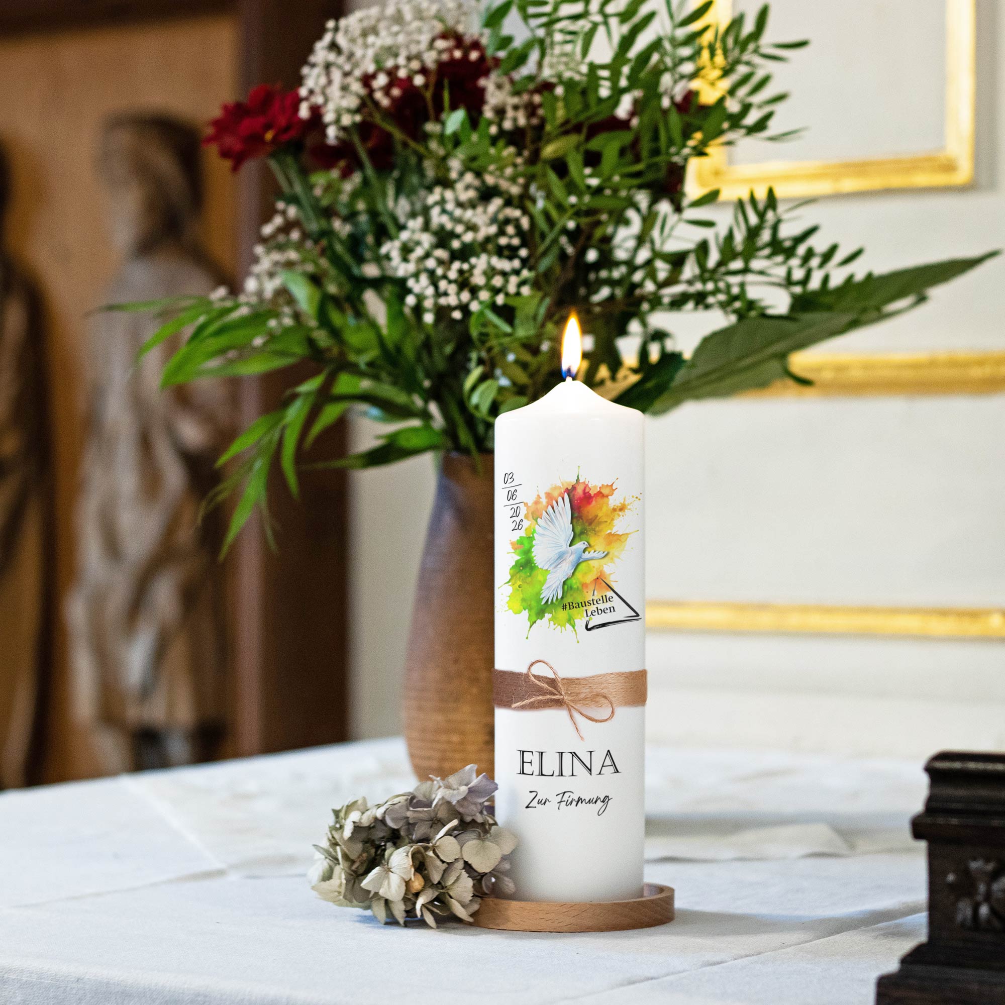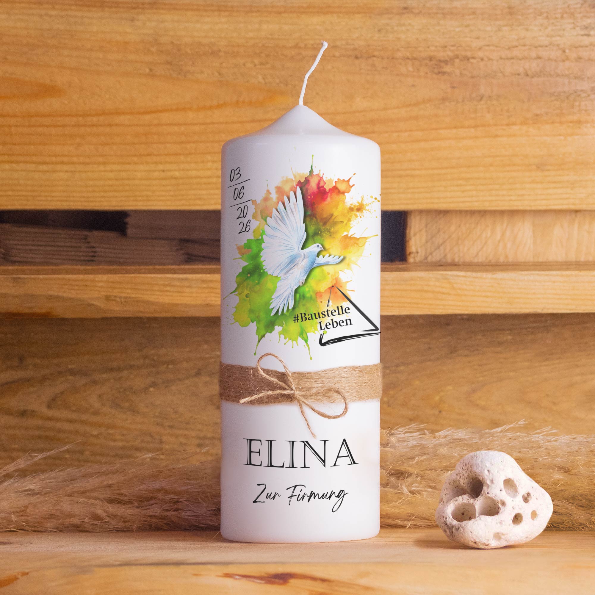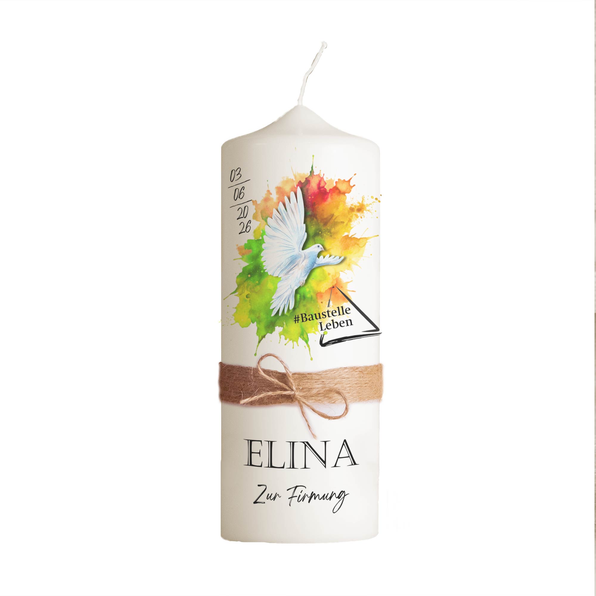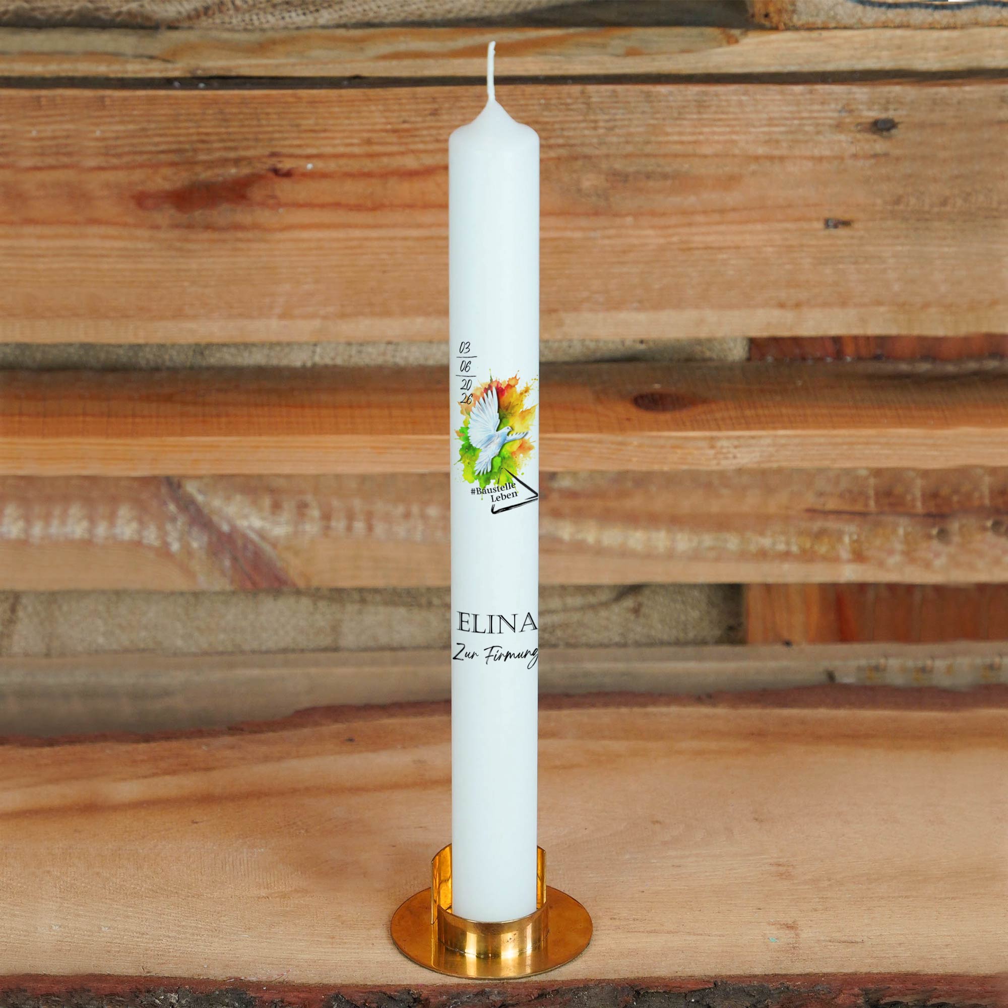 Personalisierte Firmungskerze zum Firmungsmotto 2026 „Baustelle Leben“