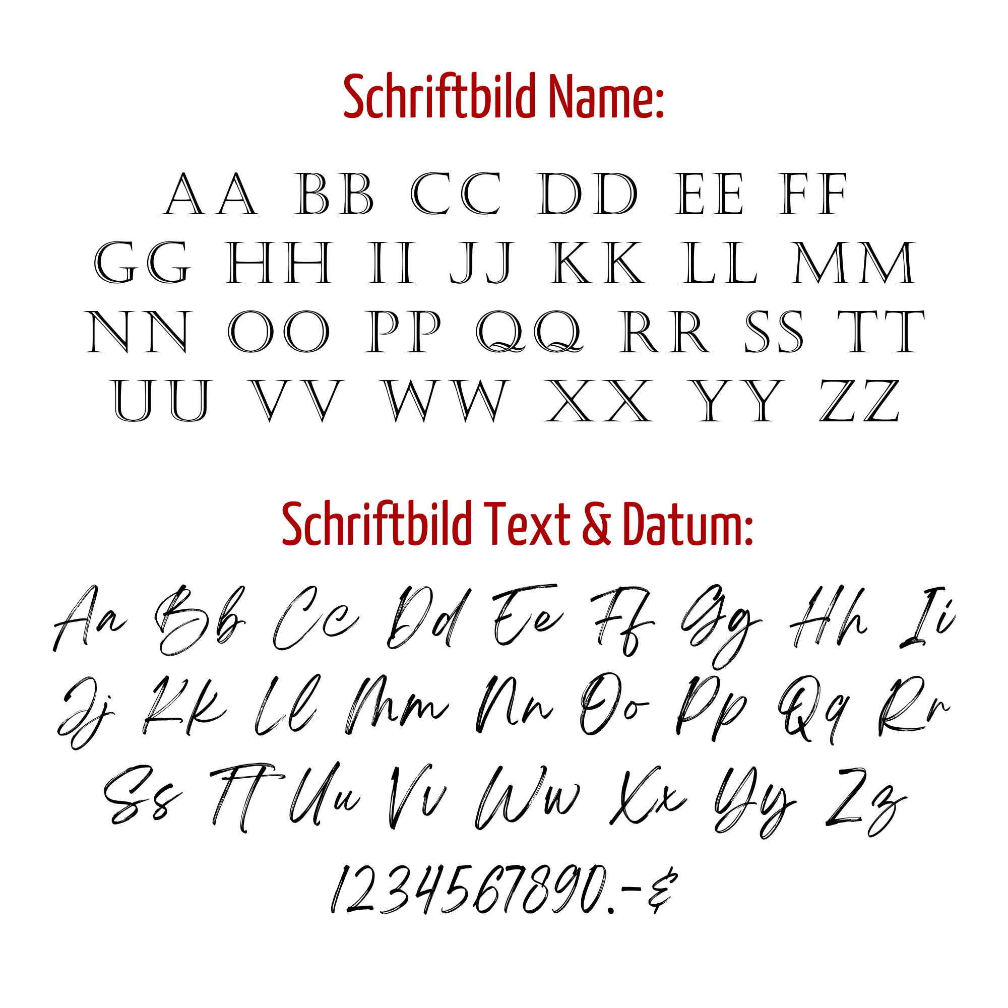 Gestaltbar mit Name, Datum und optionalem Zusatztext
