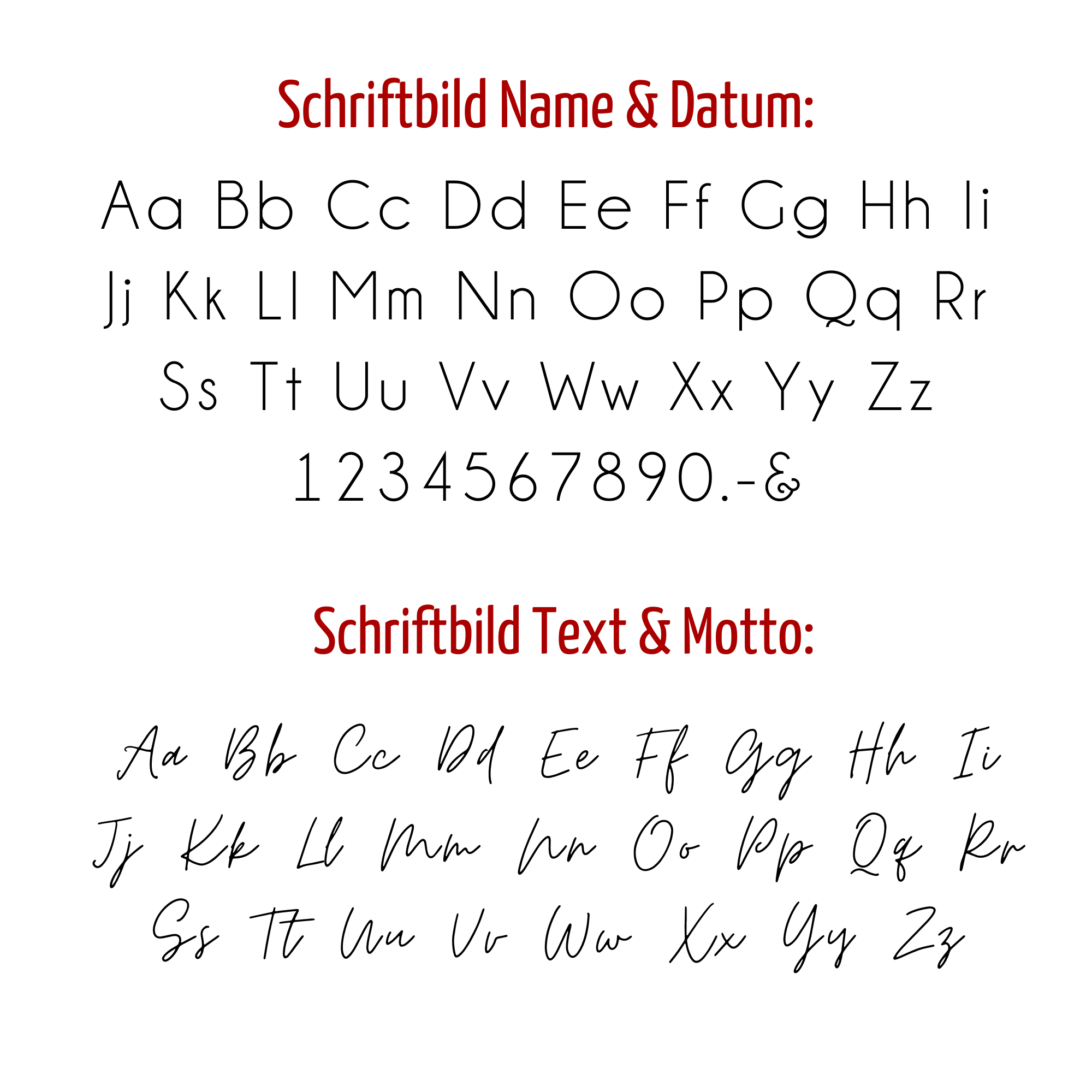 Bitte prüfe Schreibweise und Angaben sorgfältig, da diese 1:1 gedruckt werden.